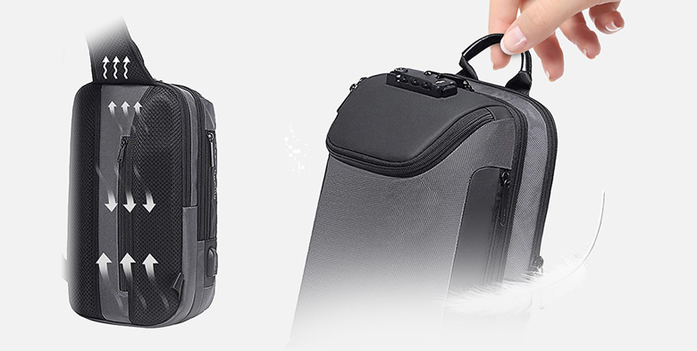 Very light weight to carry. Shoulder strap and back are made of breathablemesh padded that can provide you all day comfort.