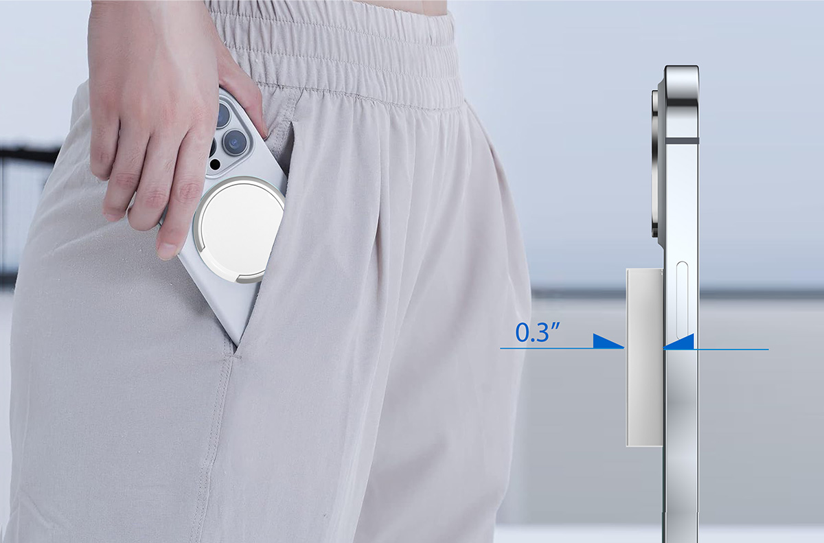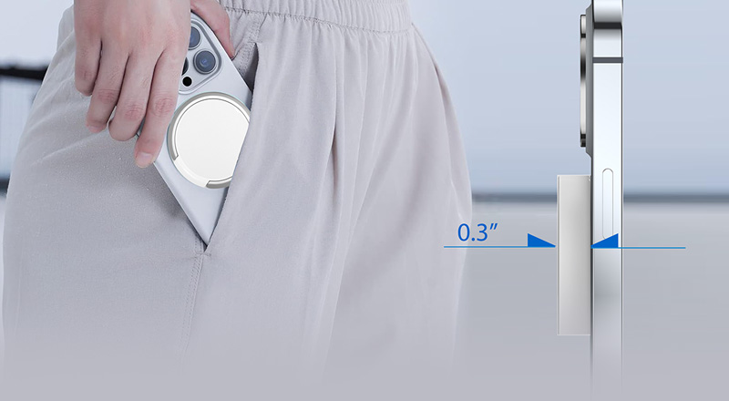 Experience convenience on the go with iMojo'spocket-size charger, only 0.30 inches thick.