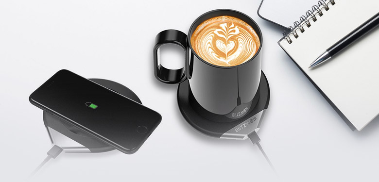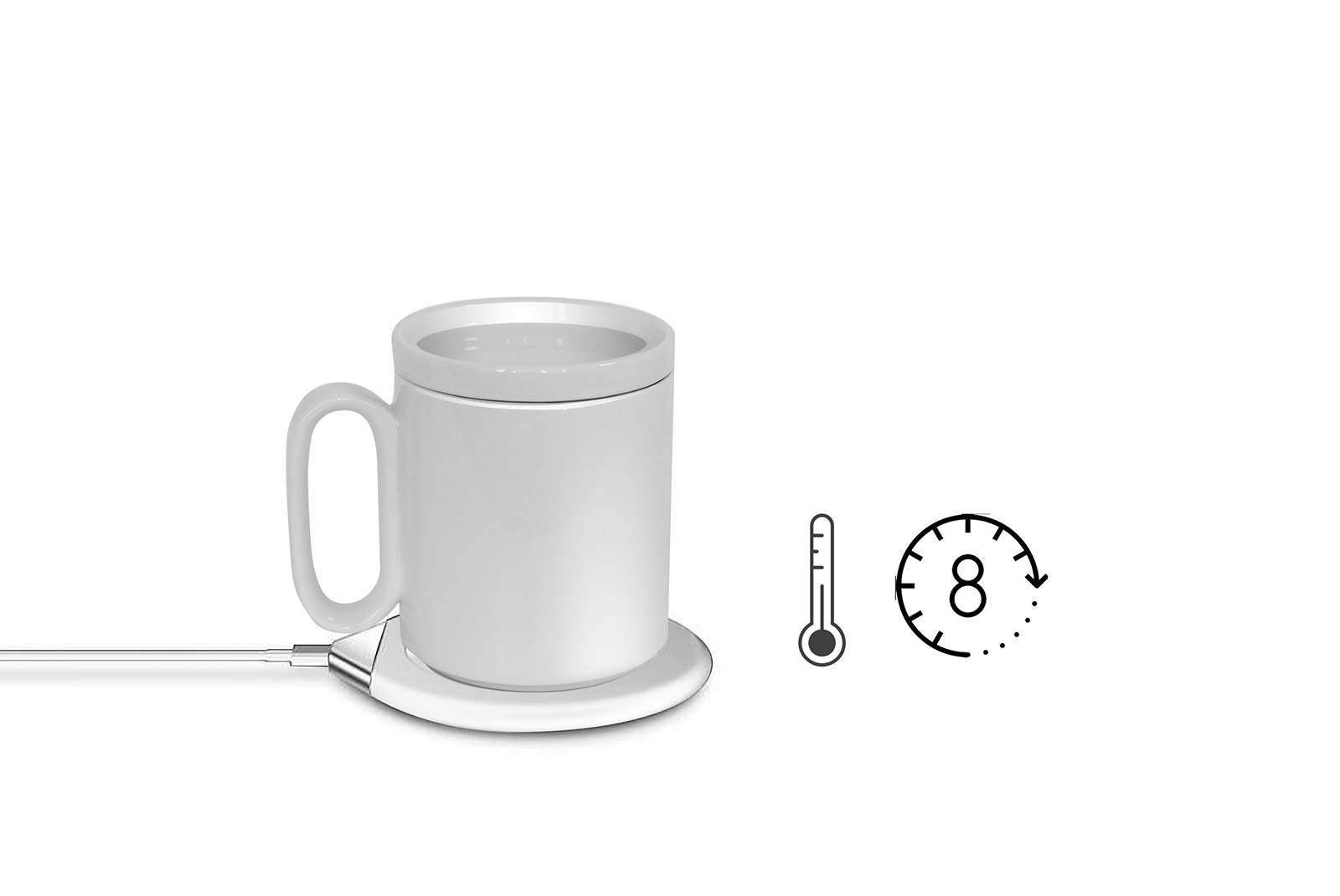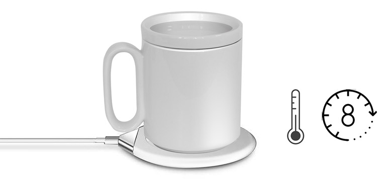 Keep coffee or tea warm via the induction heater within the base. Using ceramic wireless heating technology, it provides better thermal conductivity, so you can keep beverages at a steady 131F for about eight hours.