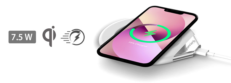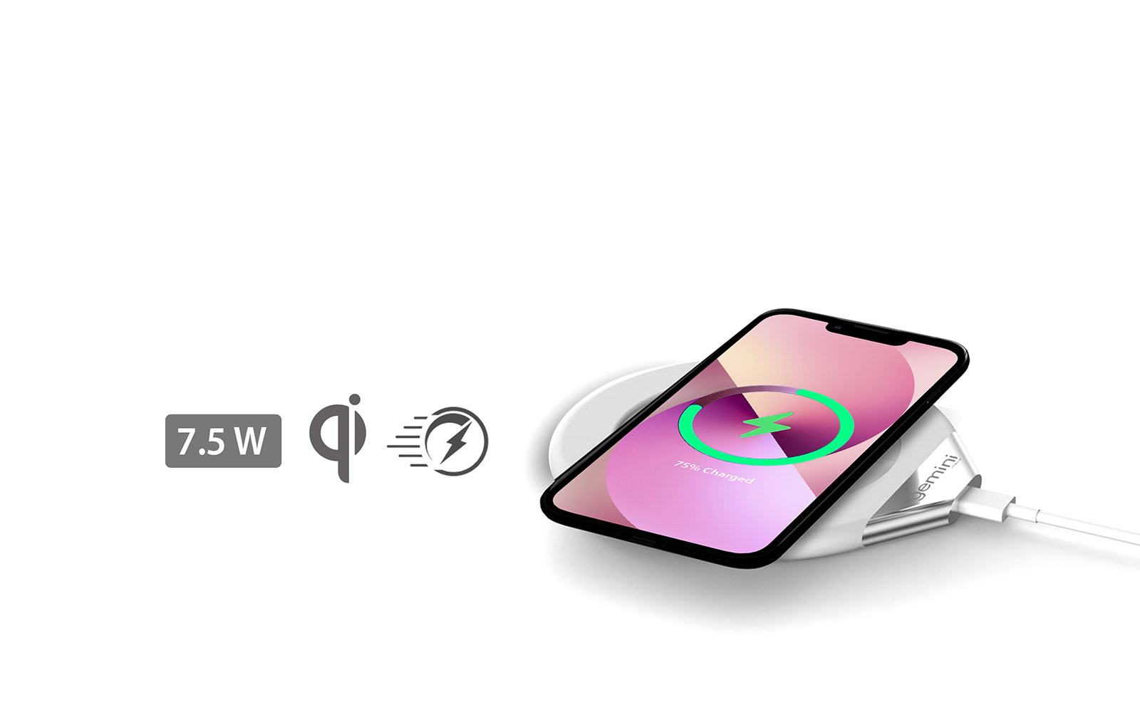 The built-in charger supports Qi protocols and is compatible withApple 7.5W fast charging and standard 5W charging.