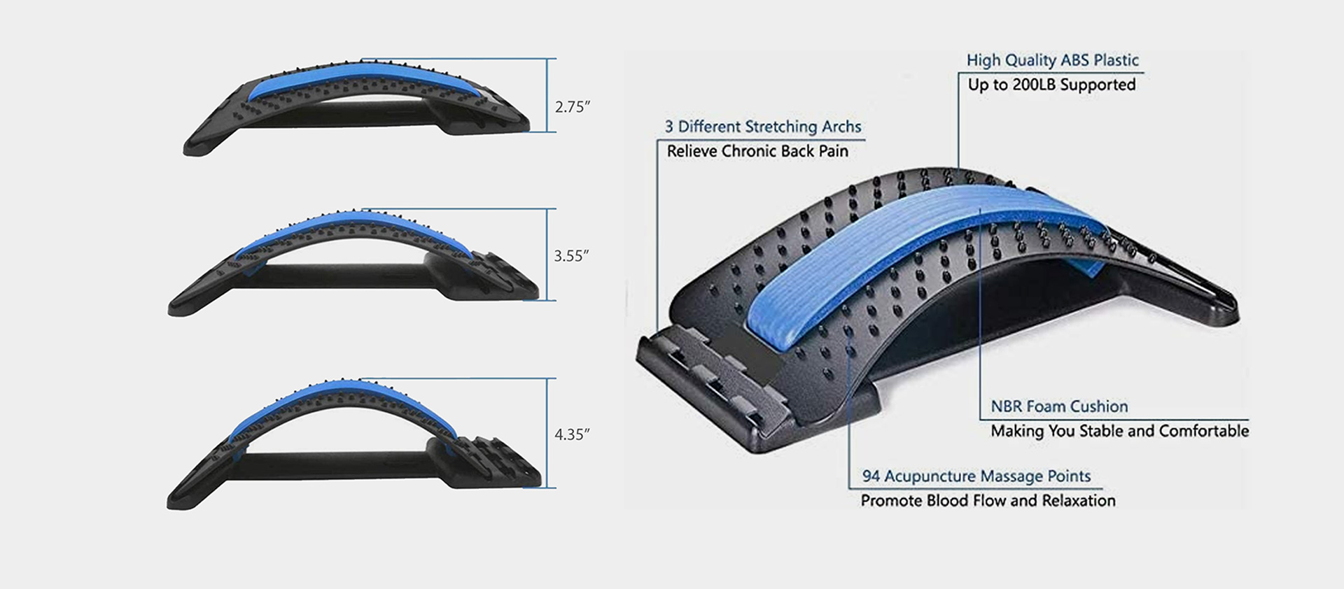 Relieve pain effectively and improved posture. With three gear adjustment allows for the perfect stretch to relieve back tension after a long day