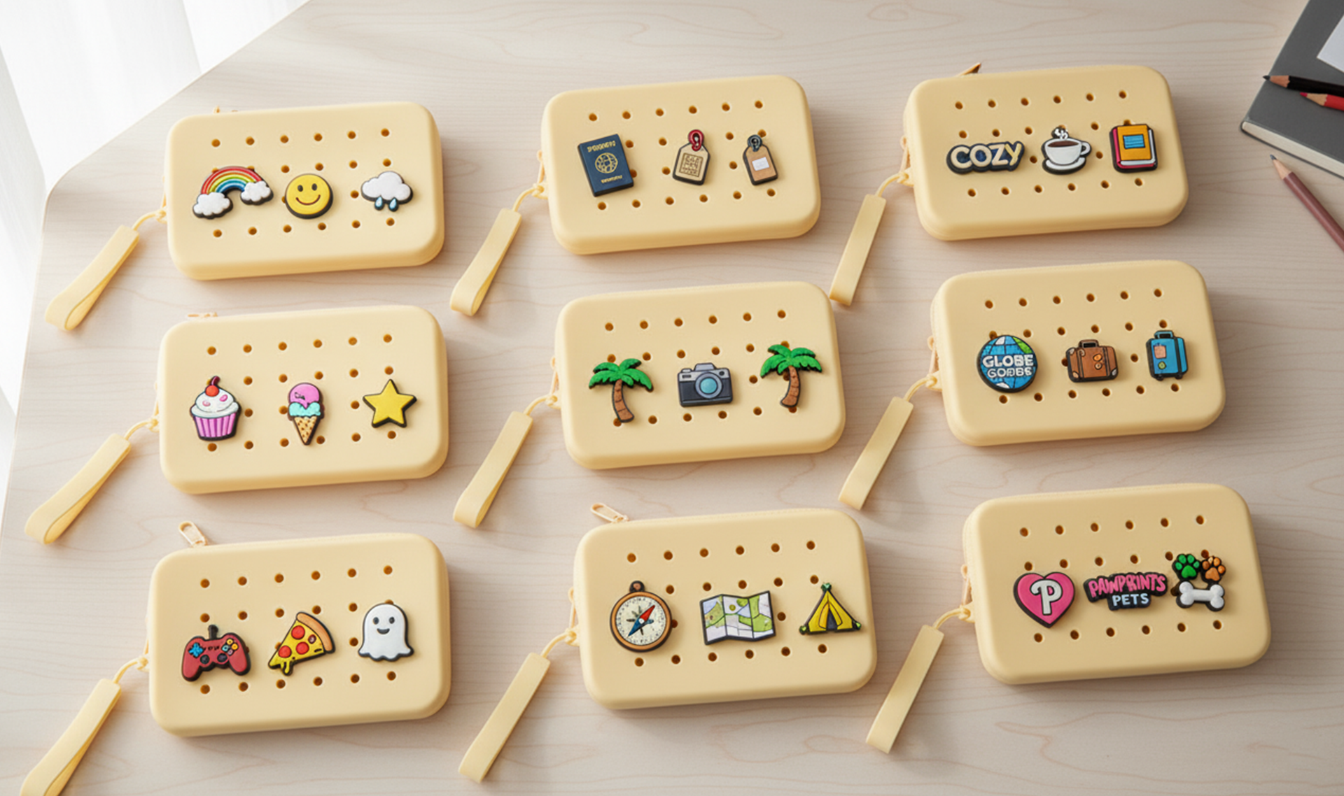 Includes three collectible charms — or upgrade to custom designs for your brand.